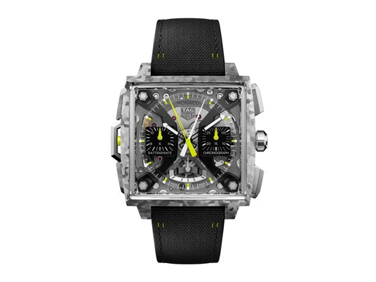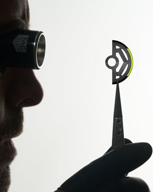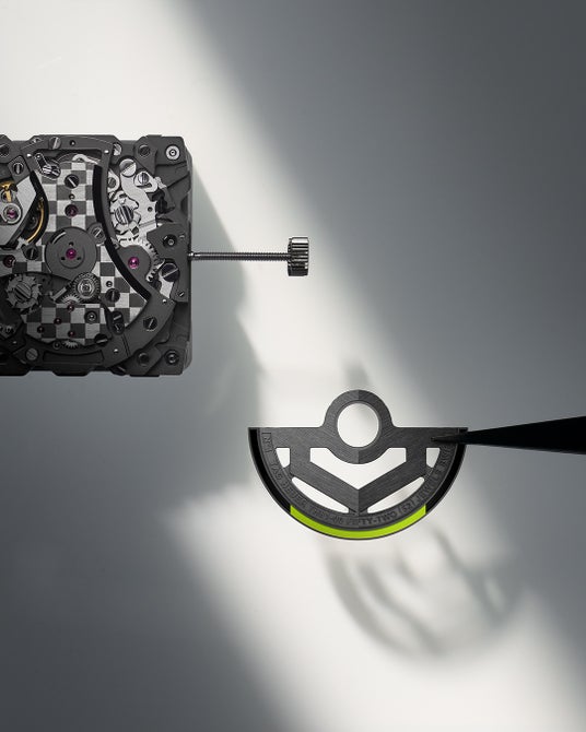 TH-チタン誕生 この新作タイムピースをさらに格上げしているのが、金属の本質を根本から変容させた、革新的なチタン素材「TH-チタン」で削り出されたケースです。開発に4年以上の歳月を要したこの革新的な素材は、素材分野における飛躍的な進歩を意味しています。このプロジェクトは、ラ・ショードフォンにあるタグ・ホイヤーの社内研究開発機関「タグ・ホイヤー ラボ」が主導しました。異なる専門分野の科学者やエンジニアが結集し、最先端設備を備えたこのラボでは、時計製造の限界に常に挑戦し続けています。 独自開発の熱処理プロセスを用いることで、この金属が原子レベルで変容し、その隠れた構造が明らかになります。この過程で金属内部の潜在的構造が顕在化し、光の反射によって変化する自然かつ不規則な模様が表面に浮かび上がります。そのため、この模様は職人の手によるものではなく、素材そのものが生み出す唯一無二のアートピースとして、ひとつとして同じものが存在しません。 この特別なチタン合金は、もともと高い強度、耐食性、エネルギー保持特性を備え、航空宇宙部品や高性能自動車用コンポーネントなど、極めて過酷な条件での使用を前提とした用途に限定的に採用されてきました。 タグ・ホイヤー ラボは、この素材に前例のないファセット効果を生み出すため、合金の原子構造を再編成する専用の熱処理工程を開発しました。このプロセスを経ることで、TH-チタンの独自のビジュアルアイデンティティが表現され、表情豊かで洗練された表面を持つ唯一無二の素材へと昇華されました。ケースに浮かび上がる模様は、変容の瞬間を永遠にとどめ、類まれなる耐久性と美しさを同時に物語っています。 露わになる精密さ 新しいケースの奥行きと立体感に合うよう、「タグ・ホイヤー モナコ スプリットセコンド クロノグラフ」は、印象的なサファイアクリスタルのベゼルとダイヤルを引き続き採用しています。この透明性が、形状と機能が織りなす緻密な相互作用を目で楽しめるよう仕立てられています。 ダイヤルの下では、ブラックオパーリンのクロノグラフカウンターが鮮やかなコントラストを演出し、スプリットセコンド針は鮮やかなライムグリーンで仕上げられています。同じライムカラーはチタン製のスプリットセコンド プッシュボタンとカウンター針にも使用され、最高の視認性を約束するとともに、スピードと性能を示すためにこうした色合いが頻繁に使用されるモーターレーシング界との紛れもないつながりをさりげなく表現しています。また、ダークトーンのブリッジと手作業でポリッシュ仕上げが施された面取りとの間の生まれる陰影と輝きとの間のバランスが、メカニズムが持つドラマ性を際だたせています。