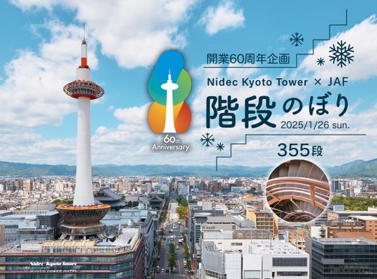 京阪ホテルズ&リゾーツ株式会社(本社:京都市下京区、代表取締役社長 上野 正哉)が運営するニデック京都タワーは、JAF(一般社団法人日本自動車連盟)京都支部(支部長 中村 正人)と共催で、2025年1月26日(日)に「階段のぼり」イベントを開催します。