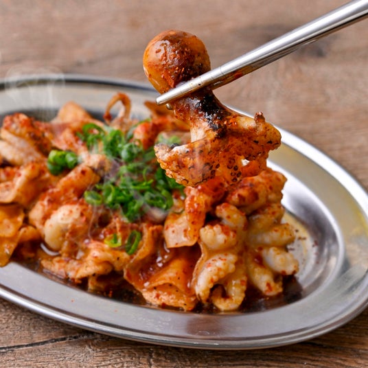 大人気のチュクミ(イイダコ)×韓国料理に欠かせないサムギョプサルが合わさったボリューム満点メニュー!