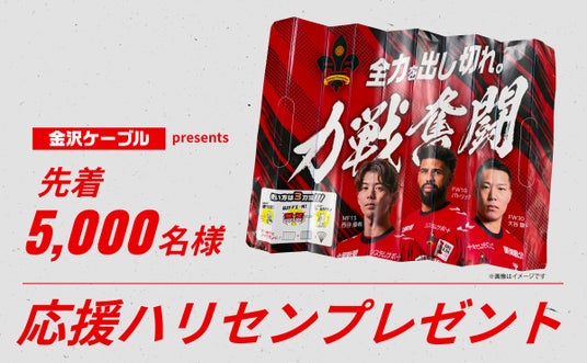 - 先着5,000名様に応援ハリセンプレゼント! ツエーゲン金沢の選手たちがデザインされた応援ハリセンを各入場口にて配布します。(ビジター入場口除く)叩くもよし、広げて掲げるもよしの便利アイテムをぜひGETしてください!■配布場所:各入場口(ビジター入場口を除く)■配布開始:16:00~(先行入場対象者は15:30~)※なくなり次第終了■配布数:5,000枚※おひとり様につき1枚のみ