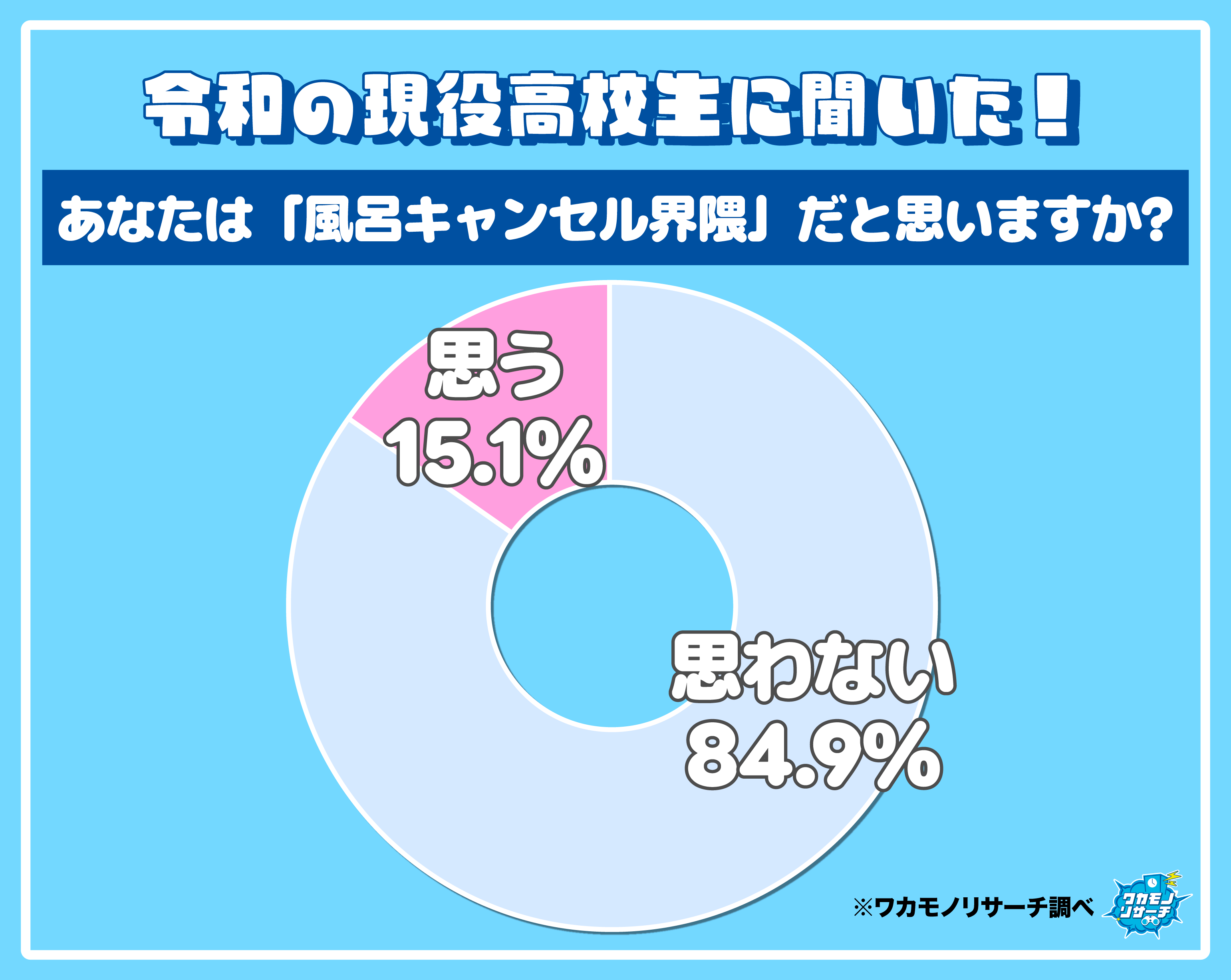 一方、15.1%の風呂キャンセル界隈だと「思う」と回答した現役高校生からは、「お風呂がめんどくさいと思うから」