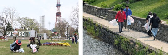 テレビ父さん・ツルくん、ツルちゃんと一緒に楽しくごみ拾い!札幌市民が「市民の憩いの場」で清掃活動