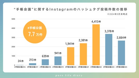 手帳の販売が開始される秋冬のシーズン、SNSで“手帳会議”が話題となり、Instagramでの「#手帳会議」の累計件数は7.7万件と、年々SNS上での投稿件数が増加しています。