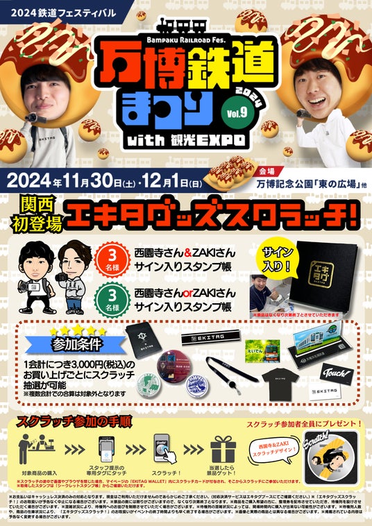 ◎「エキタグ」は、2024年11月30日(土)・12月1日(日)に大阪府吹田市「万博記念公園」にて開催される「万博鉄道まつり2024 with観光EXPO」へ出展いたします。