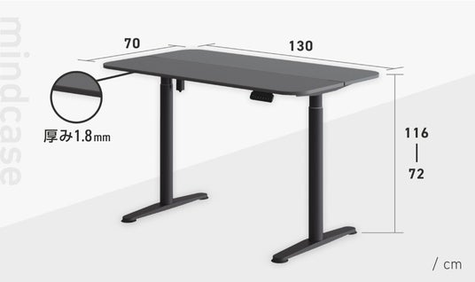 Allround Deskは72cmから116cmまで、自由に高さを調節することが可能です。 座って読書に集中したい時も、立ってオンライン会議でプレゼンしたい時も、ワンクリックで調整できます。