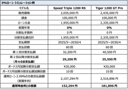 ■Tiger 1200シリーズ、Speed Triple RS/RR 0%特別金利ローン キャンペーン