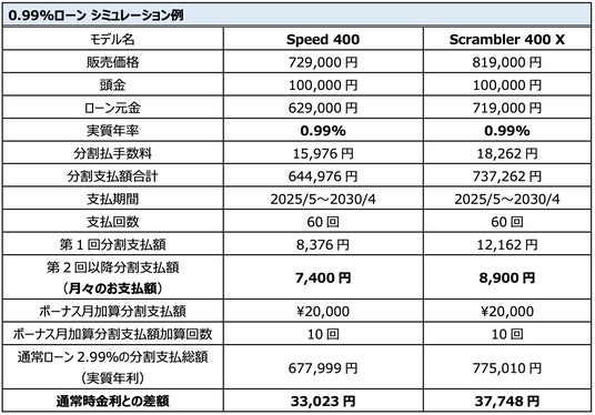 対象車両:Speed 400 、Scrambler 400 Xの新車