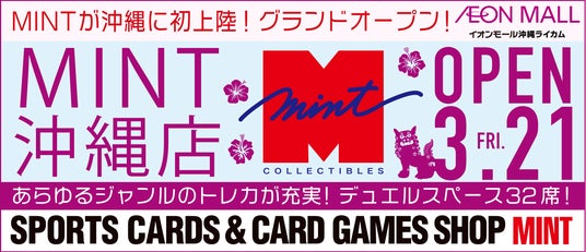 国内最大級のトレーディングカード専門チェーン店MINTを運営する、株式会社ミント(本社:東京都台東区、 代表取締役社長 新家 達雄、以下 ミント)は、2025年3月21日(金)、沖縄に総合トレーディングカード・フィギュアショップ「ミント沖縄店」をオープンいたします。