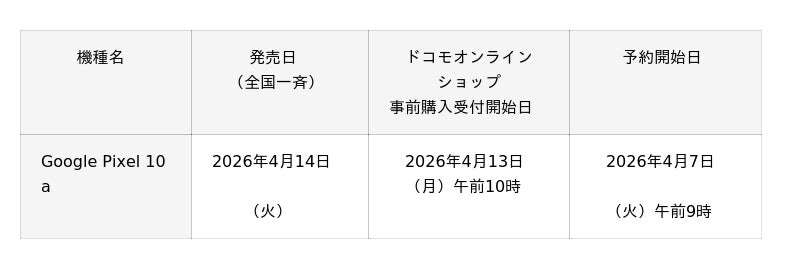 ドコモ、「Google Pixel 10a」を発売