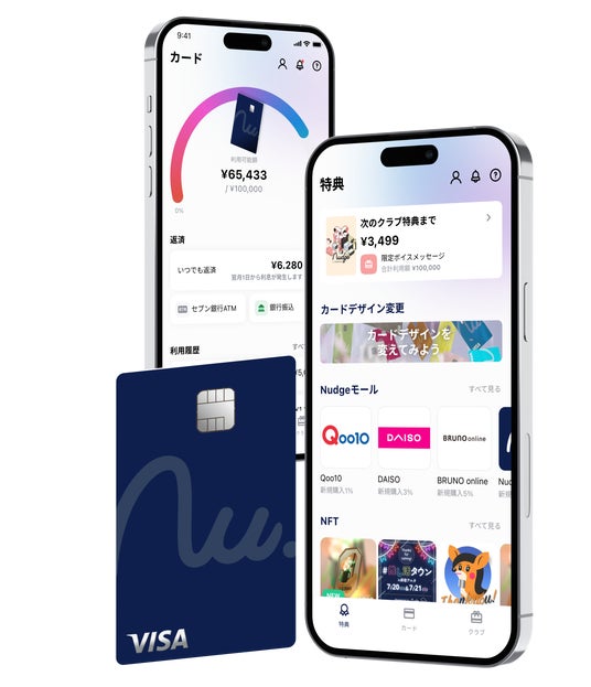 - オフ会招待 - - 日程や内容は現在鋭意調整中。決定次第、カード会員の皆さまにご案内します。 また、これらの特典は、カードの累計利用金額に応じて得られると同時に、ナッジでは、クレジットカードを安心してご利用いただけるよう、ユーザー自身で月々の利用上限額を決められる機能や、すぐに・少しずつが選べる柔軟な返済プラン、いつまでにいくら返済が必要かが一目でわかる表示など、ユーザーファーストなサービス設計により、クレジットカードの安全な利用をサポートしています。 アーティスト写真が引き立つナンバーレスカード