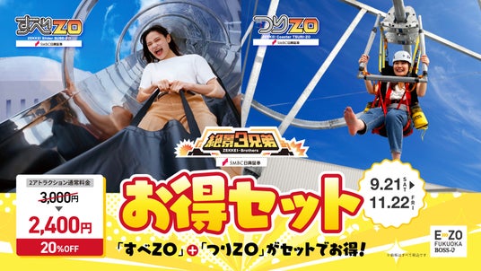 先日、人気バラエティ番組・テレビ朝日の「ナニコレ珍百景」で珍百景として登録された「絶景3兄弟 つりZO SMBC日興証券」、そして「絶景3兄弟 すべZO SMBC日興証券」のセット券を、9月21日(土)~11月22日(金)の期間限定で販売します。つりZOもすべZOもどちらも体験したい方必見!「珍百景」の眺めをお試しあれ!ぜひお得なこの機会にお楽しみください!
