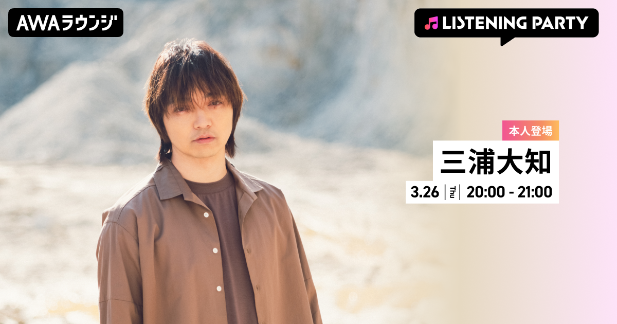 AWA株式会社(本社:東京都港区、代表取締役CEO:冨樫晃己)が運営する、サブスクリプション型(定額制)音楽ストリーミングサービス「AWA(アワ)」は、2026年3月26日(木) 20:00~21:00にて、無料で誰でも参加できるオンライン空間「ラウンジ」で、三浦大知が音声ライブ配信で登場するリスニングパーティーを開催いたします。