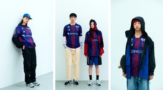 小さいころから東京育ちで、FC東京が東京ガスサッカー部の時から応援していて、FC東京がスタートした98年にスタイリストデビューしたので縁を感じます。今回の大きなテーマとして、ライフスタイルシーンでのユニフォーム着用を提案したいとオファーを受け、どのように東京らしく街に馴染ませるかを意識しました。今の20代はそれぞれが独特な洋服の楽しみ方をしていて、それを体現したコーディネートです。メンズの方はシャツを重ねたり、自分だけのオリジナルな着こなしをイメージしてスタイリングしました。
