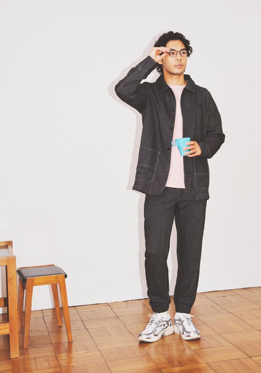 NEWカラーも加わったワークウエア風ジャケットとスポーティジョガーパンツのデニム素材セットアップ。