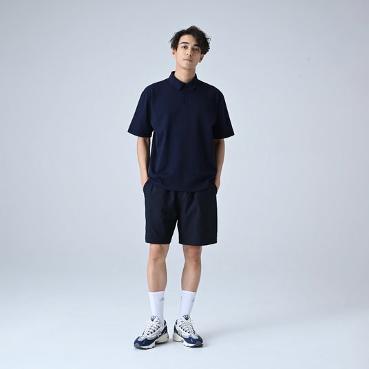 これからの季節にも活躍する、ジャケットのインナーや、ショーツと合わせたカジュアルな着こなしにも使えるシンプルデザインの洗えるニットポロにネイビーが登場。