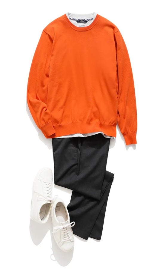 ブライトポリエステル(光を反射しやすく加工した糸)を使用して、光沢・柔らかさ・軽さを実現したクルーネックニット。14Gの天竺素材で透けない設計をしているため単品での着用も◎。シンプルなデザインながら、上質な素材感と絶妙なシルエットが品格を演出します。オンオフ問わず活躍する発色の良い一着で、ジャケットやセットアップのインナーとしても最適。ご自宅でのお手入れが簡単なウォッシャブル機能もポイントです。