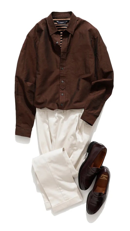 コットンとリネンのナチュラルな風合いを愉しめる「ボックスシルエットシャツ」を今季は2型展開。従来のカジュアルシャツより襟山を低く設定することで、程よくラフ感のあるシルエット。ボタンを閉じて1枚での着用はもちろん、羽織りとしても春先からロングシーズン活躍する1着。