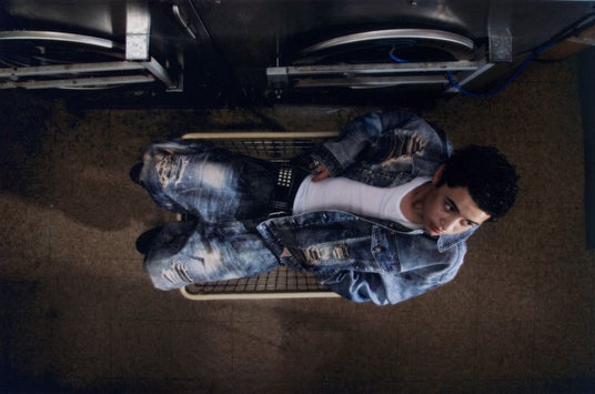 今シーズンのGUESS Originalsがグランジなインスピレーションを受けていることから、私たちはまずブルックリンのクリーニング店でJuniorに会いました。ここでは、重めにダメージ加工した新しい”フォトリアル”なデニムのオーバーサイズセットアップをご紹介。