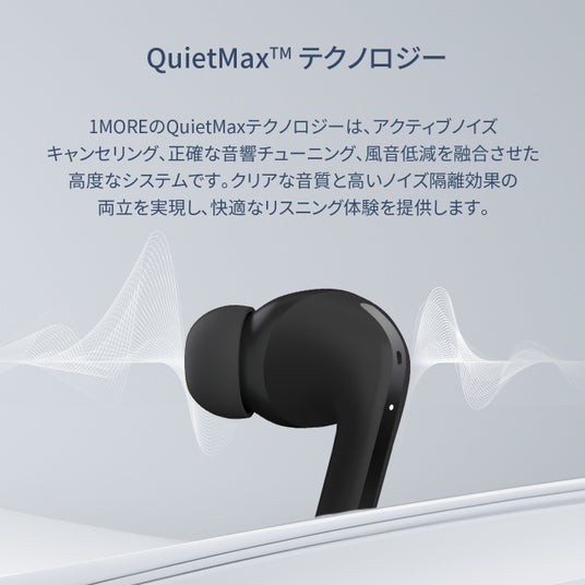 ハイレベルなノイズキャンセリング機能1MORE独自のQuietMax技術を採用したアクティブノイズキャンセリング(ANC)機能はクリアな音質と優れたノイズ遮断効果を実現します。