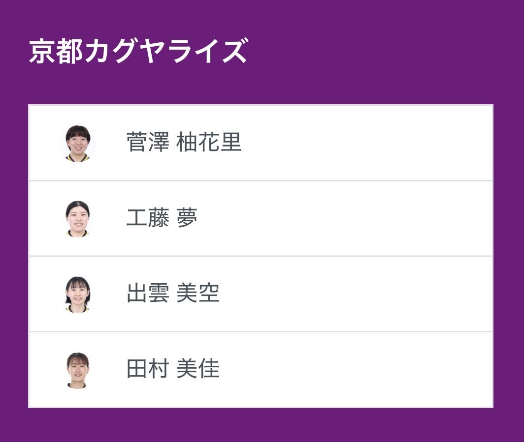 ノジマTリーグ 2025-2026シーズン 公式戦 12月13日(土)開催 日本ペイントマレッツ vs 京都カグヤライズのベンチ入り選手を発表いたします。