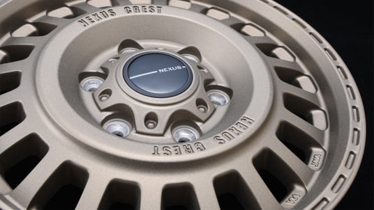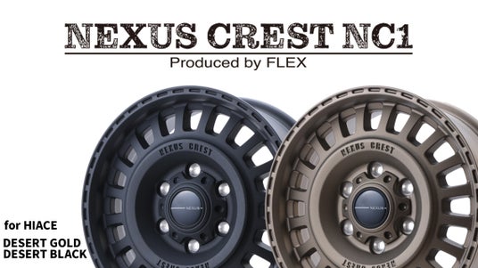 FLEXがプロデュースするハイエース専用ホイールのNEXUSシリーズに、新たに「NEXUS CREST NC-1」が追加されました。マルチスポークタイプのディスクにソリッドなオフロードテイストを取り入れ、様々なシーンにマッチするアイテムに仕上がっています。デザイン性の高いリムを外周に配置して、キャッチーな見た目に。静止していても、走り出しても、見る人の印象に残るディテールです。カラーはデザートブラックとデザートゴールドの2色をご用意。インパクトのあるディッシュスタイルがハイエースの足元を引き立てます。