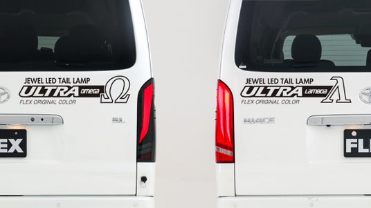 「オメガLEDテールランプ」と「ラムダLEDテールランプ」は、ヴァレンティがプロデュースする個性的なデザインやオープニング&エンディングアクションが人気を博す「ジュエルLEDテールランプ」シリーズのニューアイテムです。ストップランプはどちらも爪のようなLEDデザインで、オメガは1本、ラムダは2本というレイアウト。一度見たら忘れられない印象的なテールランプが、ハイエースのリアビューを彩ります。