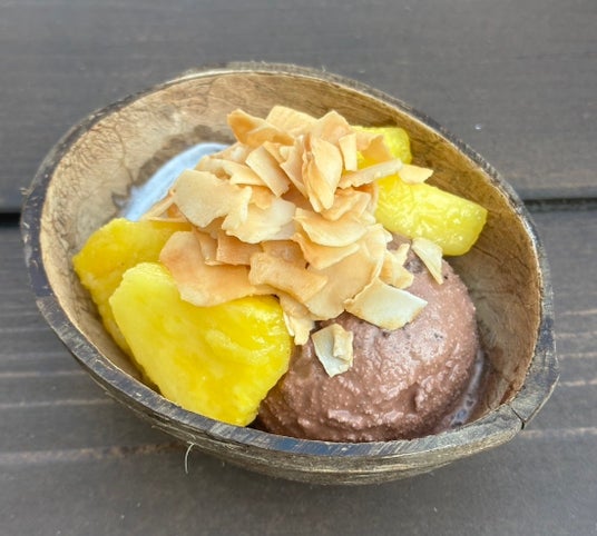 イートインでは、マウイ本店と同様にご注文いただいたアイスクリームをココナッツシェル(ココナッツの殻)に盛り付けてご提供いたします。見た目も味わいもハワイの雰囲気を感じていただけます。
