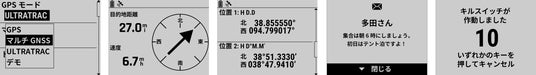 左から、GNSSマルチバンド、コンパス、デュアルポジションフォーマット、通知機能、キルスイッチ