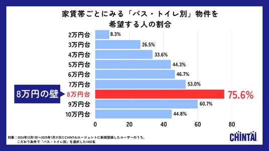 バス・トイレ別は8万円から!一人暮らしの理想が変わる“3つの壁”~100万人が登録する『CHINTAIエージェント』で得られたデータから見えた、令和の住まいの分岐点~