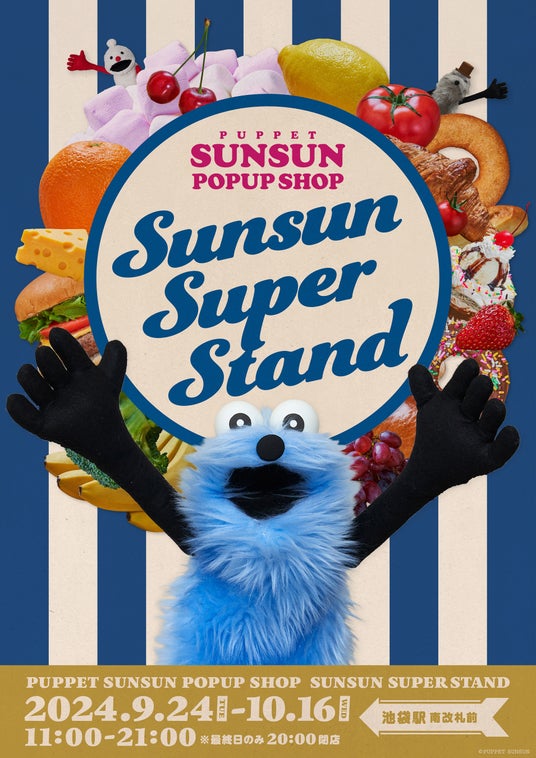 SNSの総フォロワー数は100万人を超え、海外でも人気のキャラクター・パペットスンスンの期間限定ポップアップ「PUPPET SUNSUN POP UP SHOP “Sunsun Super Stand”」を開始いたしました。