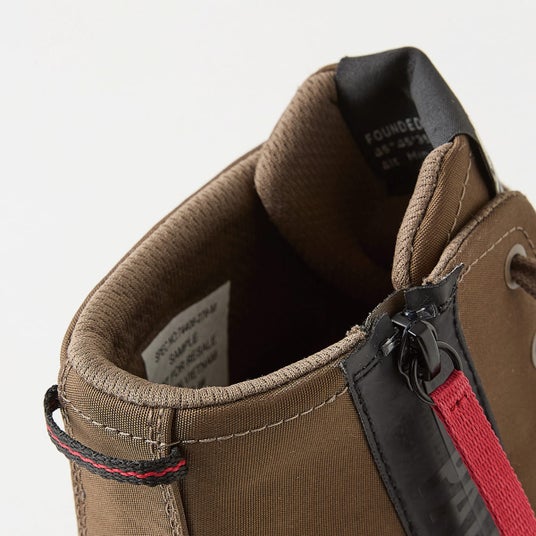 防水性、グリップ力、軽量性というシューズの根幹となる機能性はそのままに、ジッパーをアウトサイドにすることで、着脱がしやすくなり、アッパーに光沢のないなめらかなキャンバス風素材を採用。ハトメも同色にして、カジュアルテイストを高めています。さらに、履き口とインソールを改良することで、歩きやすいモデルに仕上げました。