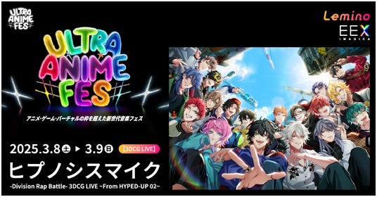 映像の企画から制作、映像編集、上映/配信向けサービスに至るまでを、グローバルにワンストップでお届けする株式会社IMAGICA GROUP(本社:東京都港区、代表取締役社長:長瀬 俊二郎)のグループ会社で、未来思考とテクノロジーによる新しい体験の社会実装を目指す株式会社IMAGICA EEX(本社:東京都港区、代表取締役社長 CEO兼CCO:諸石治之、以下当社)は、株式会社NTTドコモ(本社:東京都千代田区、代表取締役社長:前田義晃)と共催で、2025年3月8日(土)・9日(日)の2日間、ぴあアリーナ(神奈川県横浜市)にて開催する『Lemino presents ULTRA ANIME FES 2025(以下ULTRA ANIME FES)』において、ヒプノシスマイク、【3DCG LIVE】で“初”披露となる「ヒプノシスマイク -Division Battle Anthem- +」をパフォーマンスすることが決定いたしました。