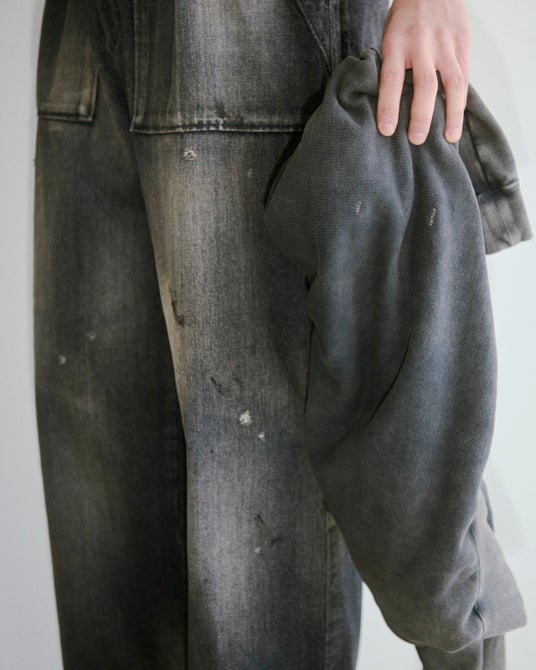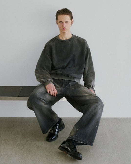 今回の両ブランドによるカプセルコレクションは、バーニーズ ニューヨークからのリクエストにより実現しました。<ヨーク>が制作したボディに<アンセルム>が加工をほどこすなど、両ブランドの魅力がクロスオーバーしたスペシャルなカプセルコレクション。全7アイテムの内、デニムジャケット・デニムパンツ・スエットシャツ・メッシュニットベストの4アイテムはバーニーズ ニューヨークだけのお取扱いとなる別注アイテムです。