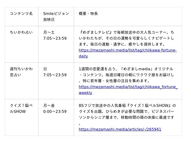 フジテレビの朝の顔『めざましテレビ』内で大人気の「ちいかわ」を活用した占いコンテンツや、幅広い世代が楽しめるクイズ番組のコンテンツを放映します。