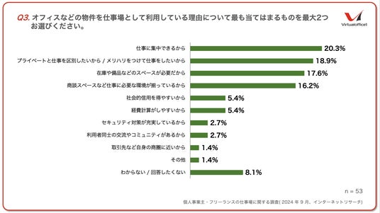 Q3.オフィスなどの物件を仕事場として利用している理由について最もあてはまるものを最大2つお選びください。