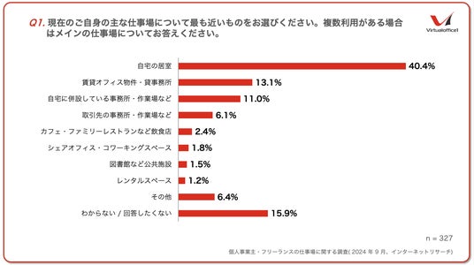 東京都渋谷区・広島市のバーチャルオフィスを提供する株式会社バーチャルオフィス1では、2024年9月に個人事業主・フリーランスを対象に「仕事場」に関する調査を実施しました。