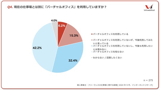 Q4.現在の仕事場とは別に「バーチャルオフィス」を利用していますか?