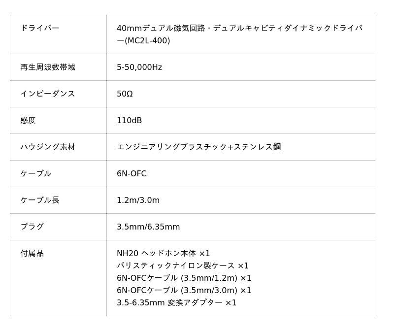 NH20のチューニングコンセプトは、優れた密閉型ヘッドホンの性能を前提に、ミュージシャンにリファレンスレベルの音質を提供することです。