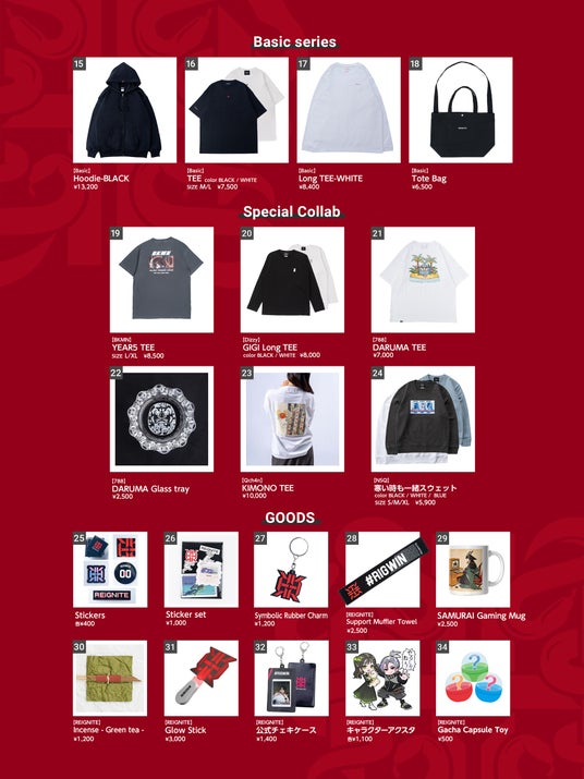 チームのテーマカラーである赤と黒をベースに、チームコンセプトである「和」の要素とeスポーツらしいスタイリッシュさを両立させたデザインとなりました。 『GAWON』とのスポンサー契約締結を記念し、POPUP会場にてREIGNITEの新たな公式ユニフォーム『2025 PRO Jersey』の受注販売が決定! 『REIGNITE 選手レプリカ(¥13,200)』と、ファンのための背番号「00」を掲げた『REIGNITE オリジナル(¥11,000)』をそれぞれ販売いたします。 『REIGNITE 選手レプリカ』は所属する全選手からお選びいただけます。