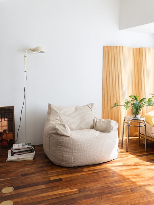 商品名:GOOD THING×LOOSYコラボ 1人掛けビーズソファ BEIGE / CHECK