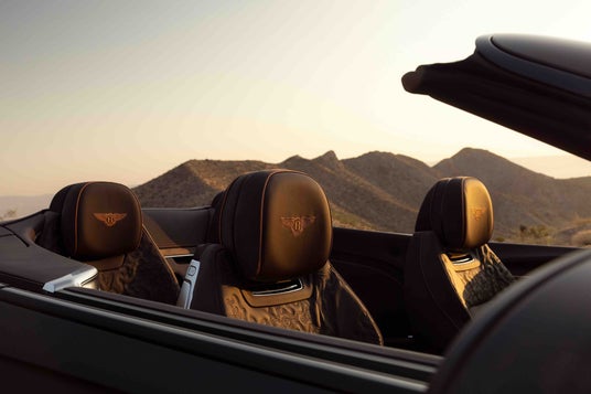 夕日に照らされるコーチェラ バレーの険しい山々が、ハバナ サテン仕上げのコンチネンタル GT スピードとコンバーチブルにインスピレーションを与えました。インテリアには、カリフォルニア州デスバレーの大地を感じさせる特注のブラインドキルティングが施され、コニャックとバーントオークのレザーが美しく調和しています。さらに、フロアマットにも同じ地形を表現した3Dデザインが刻まれ、フェイシアとコンソールにはハバナ・サテン仕上げとカッパーストーンベニヤが融合。ブロンズのピンストライプが、さりげないアクセントとなっています。