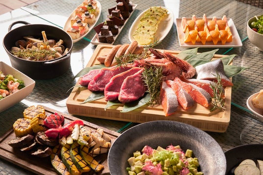2025年4月には「Agora BBQ Terrace 2025」がグランドオープンを迎え、牛ロースや海老などのお肉や魚介を炭火で焼き上げる本格BBQをご堪能いただけます。炭火ならではの香ばしさとジューシーなグリル料理に加え、アヒージョやサラダ、デザートなど、バリエーション豊かなメニューをビュッフェスタイルでご提供します。