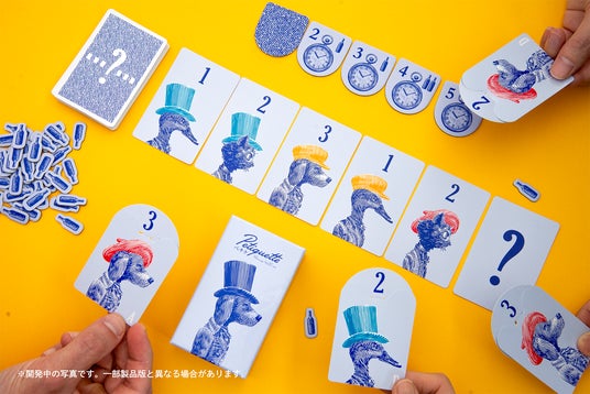 株式会社オインクゲームズは、2025年5月17日(土)・18日(日)に幕張メッセで開催されるゲームマーケット2025春にて、新作ボードゲーム『ペチケ』を発売します。一般販売開始日は2025年5月23日(金)です。 『ペチケ』は、3種の動物・3種の帽子・5種の数字の組み合わせからなるカードを使って行う新体験ゲーム。ランダムに並べられた5枚のカードに無理やり法則性を見い出し、それらの中に入れるのに最もふさわしいカードはどれかを考えるゲームです。例えば、「赤、赤、黄…」と並んでいたら次は「黄」がくるのが美しい、「イヌ、ネコ、トリ…」と並んでいたら次は「イヌ」がくるのが美しい、など。でも、答えはひとつではありません。誰かと同じカードを考えていたら、得点をゲット。「このならびが一番美しいだろう!」「あの人はこんなふうに考えるのではないだろうか?」さまざまな思考を己の中で味わい、互いの価値観を共有する時間は耽美的とも言えるでしょう。不思議な時が流れるこのゲーム、遊んでいたら時間がすっかり経ってしまいそうです。