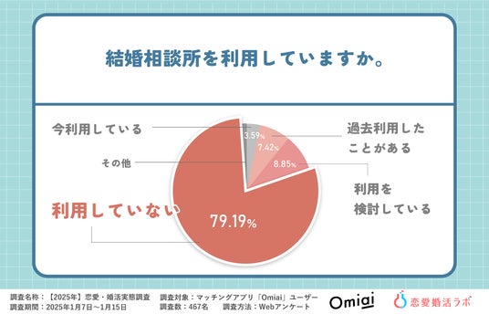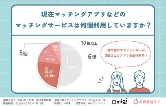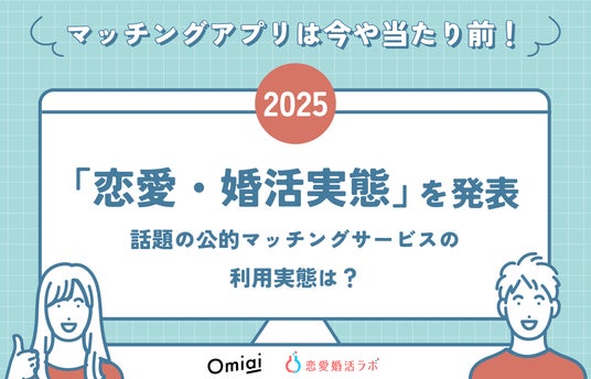 累計会員数合計2000万人のマッチングアプリを運営する株式会社エニトグループが手掛ける株式会社Omiai(本社:東京都渋谷区、代表取締役CEO:今井良樹、以下当社)は、株式会社Parasol(本社:東京都港区、代表取締役社長:伊藤早紀)が運営する未婚男女のマーケティング研究機関『恋愛婚活ラボ』と共同で、「Omiai」を利用する男女へのアンケート・分析を行い、2025年の「恋愛・婚活の利用実態」を発表します。