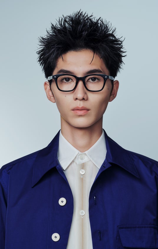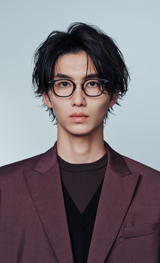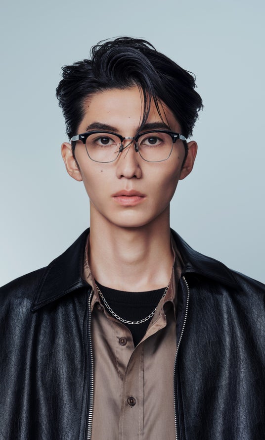 今回のコラボレーションでは、なりたい印象に合わせて選べる全4型8種のメガネを展開。「甘め」「色っぽ」「爽やか」「ワイルド」という4つのテーマを軸に、それぞれの魅力を引き出すデザインを用意しました。「甘め」には、マッシュヘアの甘さを引き立てるオールメタルフレーム、「色っぽ」は、センターパートの毛流れに色気を添えるコンビネーションフレーム、「爽やか」は、潔くおでこを出したアップバングに相性抜群な黒縁フレーム、「ワイルド」は、精悍な目元に導き、ワイルドな印象を底上げするサーモントフレームを採用。