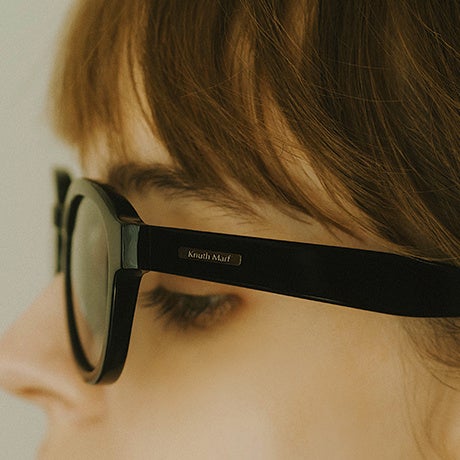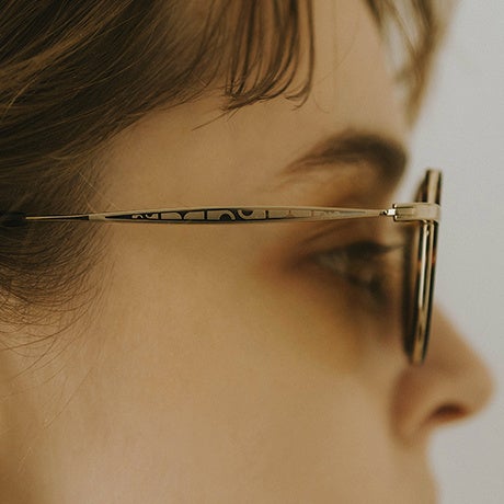 デザイン性が高いので、ファッションの一部として取り入れるだけで、一気におしゃれな顔立ちになります。太めのテンプル部分には華奢なメタルでKnuth Marfらしい柄をデザインしました。