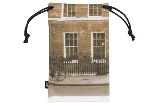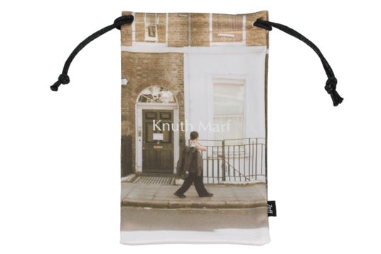 WEB予約限定特典として、巾着型メガネ拭きをプレゼント。Knuth Marfのキーワードである “旅”を表現した巾着袋。撮影で訪れたロンドンの風景をデザインにしました。