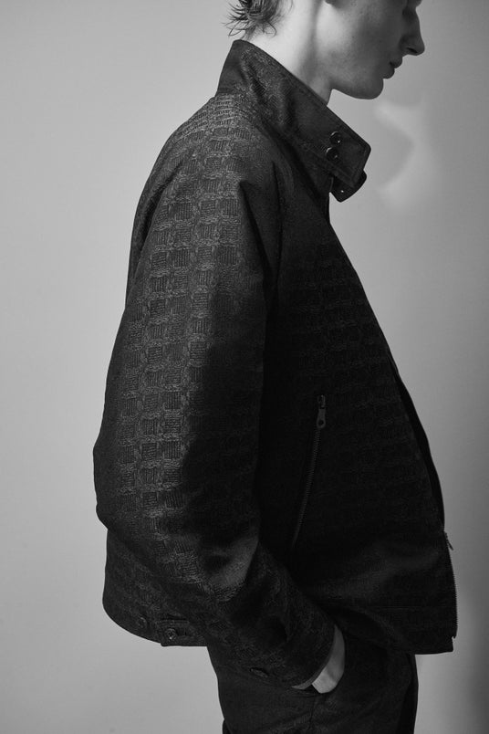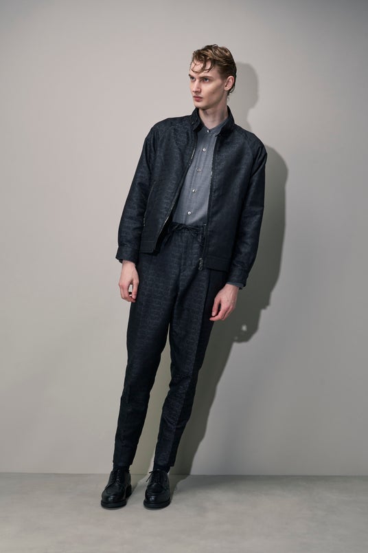 100年以上のノウハウの中で培った繊細なネクタイジャガードの技術を生かして織られており、細かい柄の表現が特徴的な高級感のあるアイテムです。デザインは「適度なフォルム」をコンセプトに、ほどよく時代感をとらえたシルエットにしています。ジャケット、ブルゾン、パンツの3型を展開。