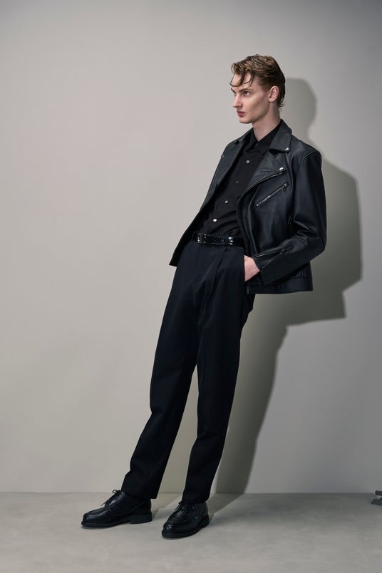 ファーストコレクションとなる24年秋冬では、シリアルナンバーが入った限定50着のカウレザーのライダースをはじめ、高級ネクタイメーカーで織られたジャガード素材を用いたアイテムや、日本に十数台しかないションヘル織機で生産されたセットアップ、素材をそのまま生かした無染色の3重織りウールコートなど、日本の匠の技が結集した全31型が登場します。そのうち、1stデリバリーの14型は、8月28日(水)より全国の『JOSEPH HOMME』ショップ(一部の店舗)と公式通販サイト「オンワード・クローゼット」で順次発売いたします。(2ndデリバリーは10月上旬に発売予定)