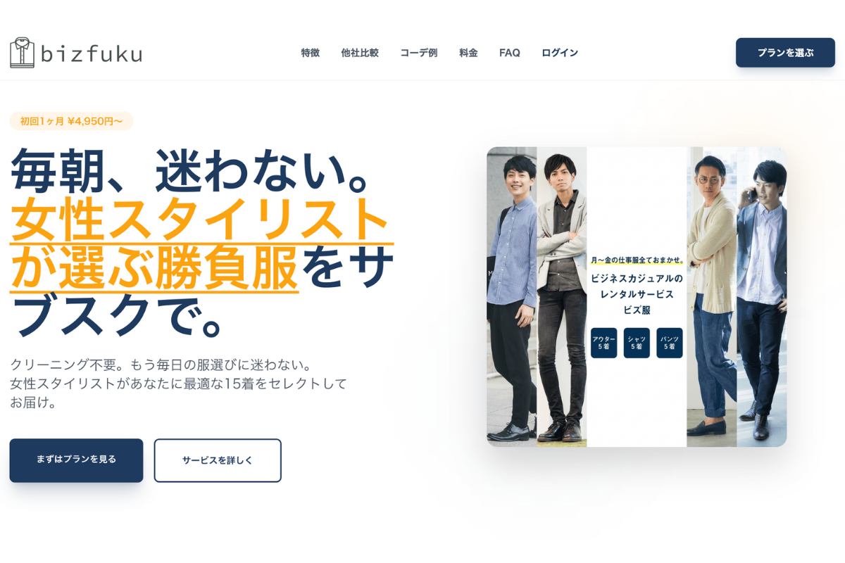 メンズファッションレンタルサービス「ビズ服」を運営する株式会社ビズ服(本社:大阪府豊中市、代表取締役:中村 昭)は、2026年1月1日(木)より、サービス内容を大幅に刷新いたしました。お客様のライフスタイルに合わせて選べる3つの新プランを提供開始するとともに、公式サイトを全面リニューアル。さらに、新しい一歩を踏み出す皆様を応援するため、全プラン初回月会費が「自動で半額」となるリニューアルキャンペーンを開始いたしました。